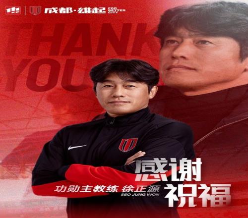 同时,蓉城官方表示,俱乐部决定授予徐正源成都蓉城足球俱乐部“功勋主教练”称号。