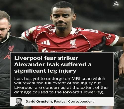 随后,伊萨克接受了治疗,并由两名利物浦医疗人员搀扶离场,弗林蓬替换他上场。伊萨克尚未接受核磁共振扫描以明确伤势的全部情况,但利物浦对这名前锋小腿的受损程度感到担忧。