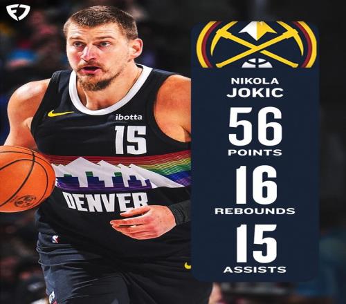 56分、16个篮板、15次助攻,外加2记盖帽,约基奇用一份电子游戏里都难以想象的超级数据,献上了圣诞大战历史上最伟大的个人表演之一,并携手贾马尔·穆雷,创造了前无古人的双人组纪录。