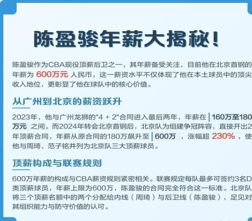 2023年,表现出色的陈盈骏,跟广州队续约了三年顶薪合同,年薪直接飙升到600万!