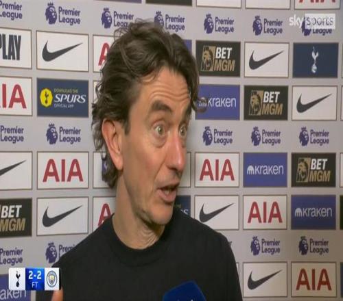率队在英超第24轮主场2-2打平曼城后,托特纳姆热刺主帅托马斯-弗兰克接受了天空体育的采访。